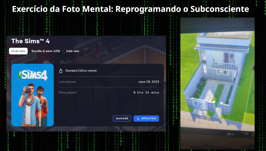 Eu lembro que quando voltei pra sp eu projetei a casa toda no jogo, decorei ela, fiquei um tempinho naquilo (8 horas), mas tinha um propósito, já tava criando a realidade naquela coisa simples.
